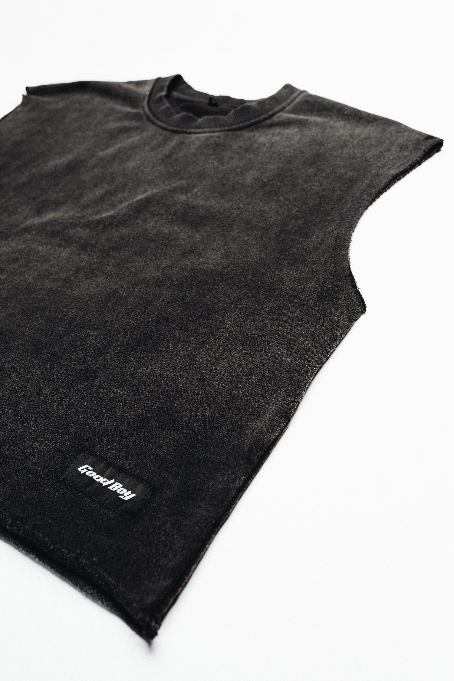 The stone-washed finish gives each piece subtle variation and depth, creating a worn, lived-in look that only gets better over time. Raw, cut-off armholes add an edge, making it easy to dress up or down—layer it or wear it solo.